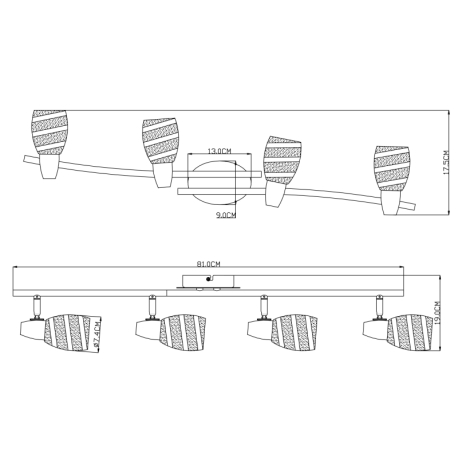 GL-54985-4 Stropní svítidlo, chrom, satinované sklo, DxV: 81x19cm, bez žárovek 4xE14, max. 40W 230V. - Roy - Globo