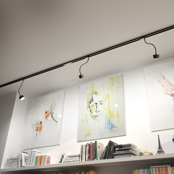 Náklopné svítidlo pro tříokruhovou lištu na ohebném husím krku |