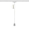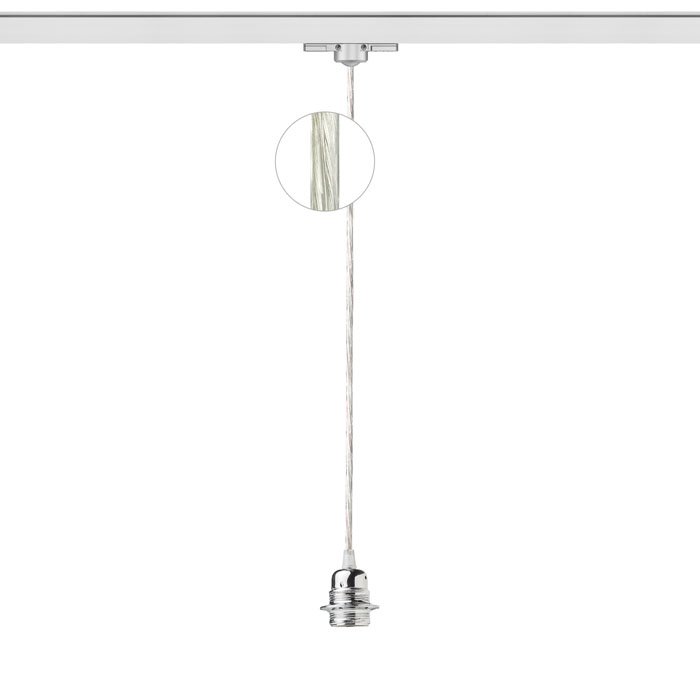 Textilní kabel s kovovou objímkou v různých barevných kombinacích, zakončený adaptérem pro zavěšení do tříokruhové lišty. |