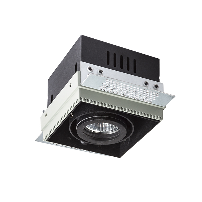 Zápustné bezrámečkové svítidlo s kardanickým uložením světelného zdroje. |
