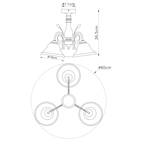 GL-69007-3 Stropní svítidlo, mosaz, sklo bílé alabastr, Ø60cm, V:37cm, bez žárovek 3xE27, max. 60W 230V. - Posadas