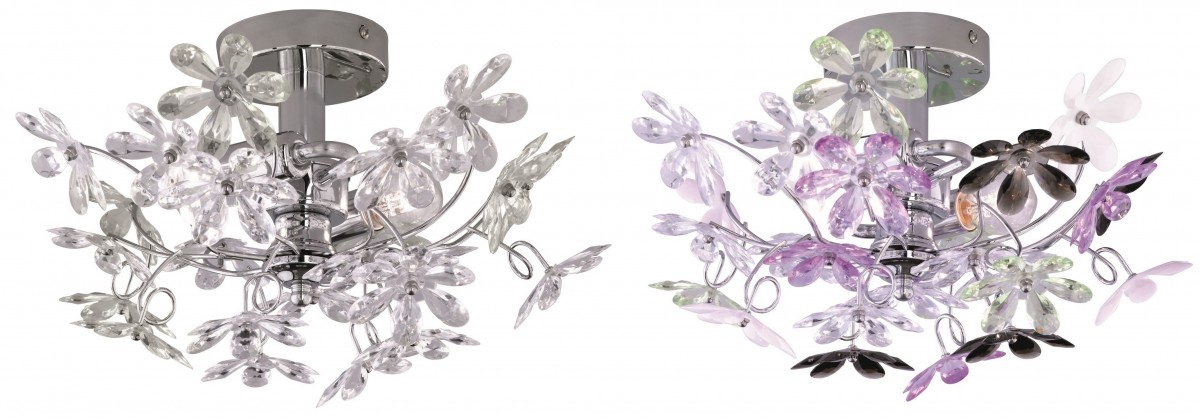 Ke svítidlu jsou dodávány 4 černé, bílé, zelené a fialové květy z akrylového skla, které si můžete na svítidlo libovolně navolit |