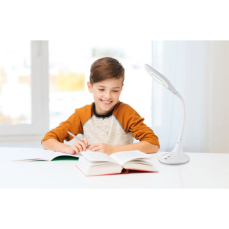 GL-58271 Stolní lampa, plast, chrom, bílý, hliník, flexo, dotykový vypínač ON/OFF, dotykový stmívač, Dx?xV: 50x18x70cm včetně 1xLED 9W 230V, 520lm, změna barvy světla CCT 3000-4500-6500K - Pattaya