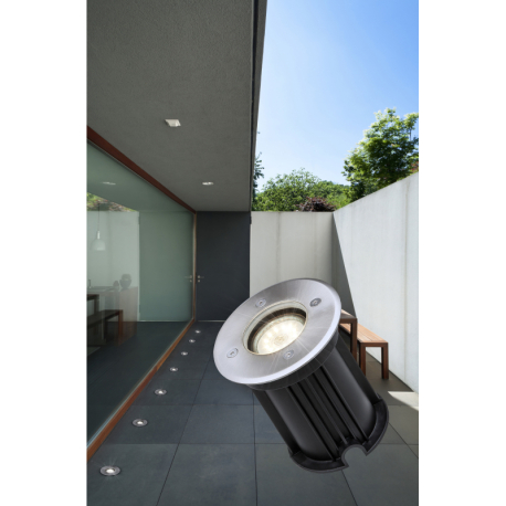 GL-31100 Venkovní svítidlo, nerezová ocel, sklo průhledné, zatížitelnost až 2000 kg, IP65, Ø11cm, V:11,5cm, Ø výřezu 93mm, bez žárovky 1xGU10, max. 15W 230V. - Style II