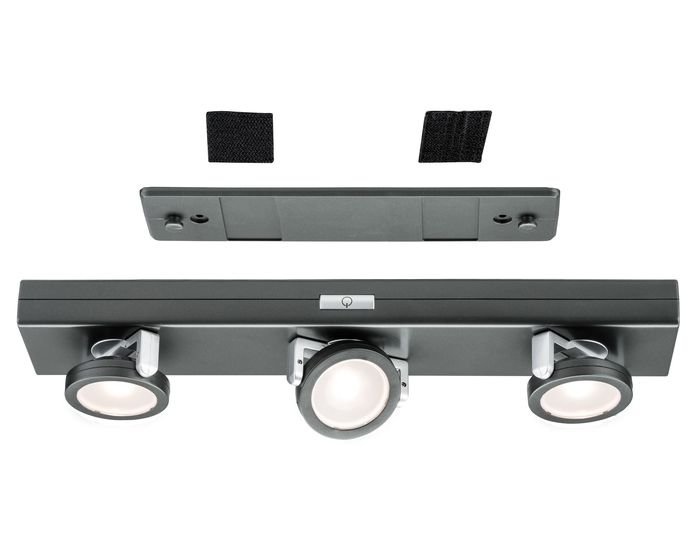- multifunkční akumulátorová svítidla s nejrůznějšími možnostmi použití u nábytku nebo pod závěsnými regály - včetně montážní desky pro jednoduchou výměnu baterie - jednoduché upevnění pomocí lepicích nebo upínacích polštářků (č. 2 a 3) |