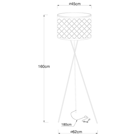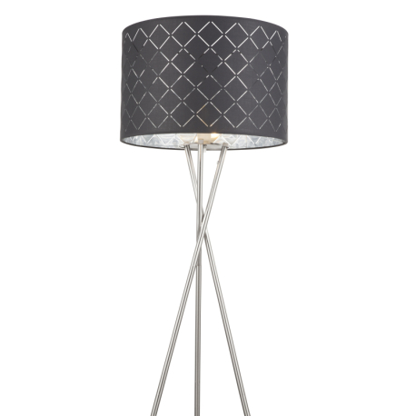 GL-15228S1 Stojanové svítidlo, kov nikl matný, textil šedý, stínidlo s dekorativním děrováním, kabel 1,8m, vypínač, Ø62cm, V:160cm, bez žárovky 1xE27, max. 60W 230V. - Kidal