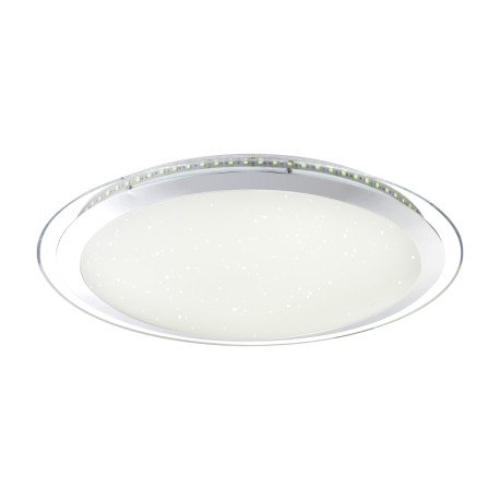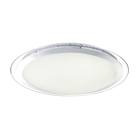 GL-48365-60 Stropní svítidlo, chrom, plast bílý, třpytivý efekt, změna barvy světla 3000 až 6000K, stmívatelné, dálkové ovládání, měnič barev, fixace barev, Ø55cm, V:10cm, včetně 1xLED 60W 230V, 280-3300lm, 36xRGB LED 0,06W 230V. - Nicole