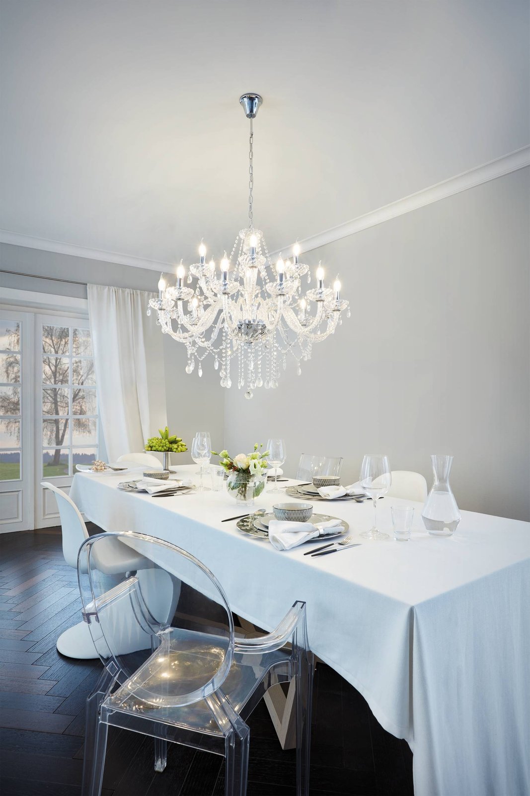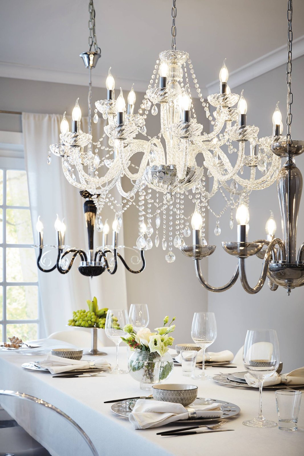 Basilano jsou lustry v klasickém stylu. Jsou vyrobeny z oceli v barvě chromu a skla v čiré barvě. |