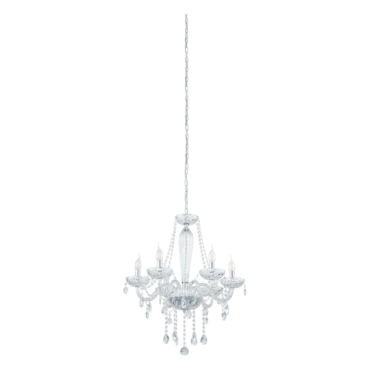 Basilano jsou lustry v klasickém stylu. Jsou vyrobeny z oceli v barvě chromu a skla v čiré barvě. |