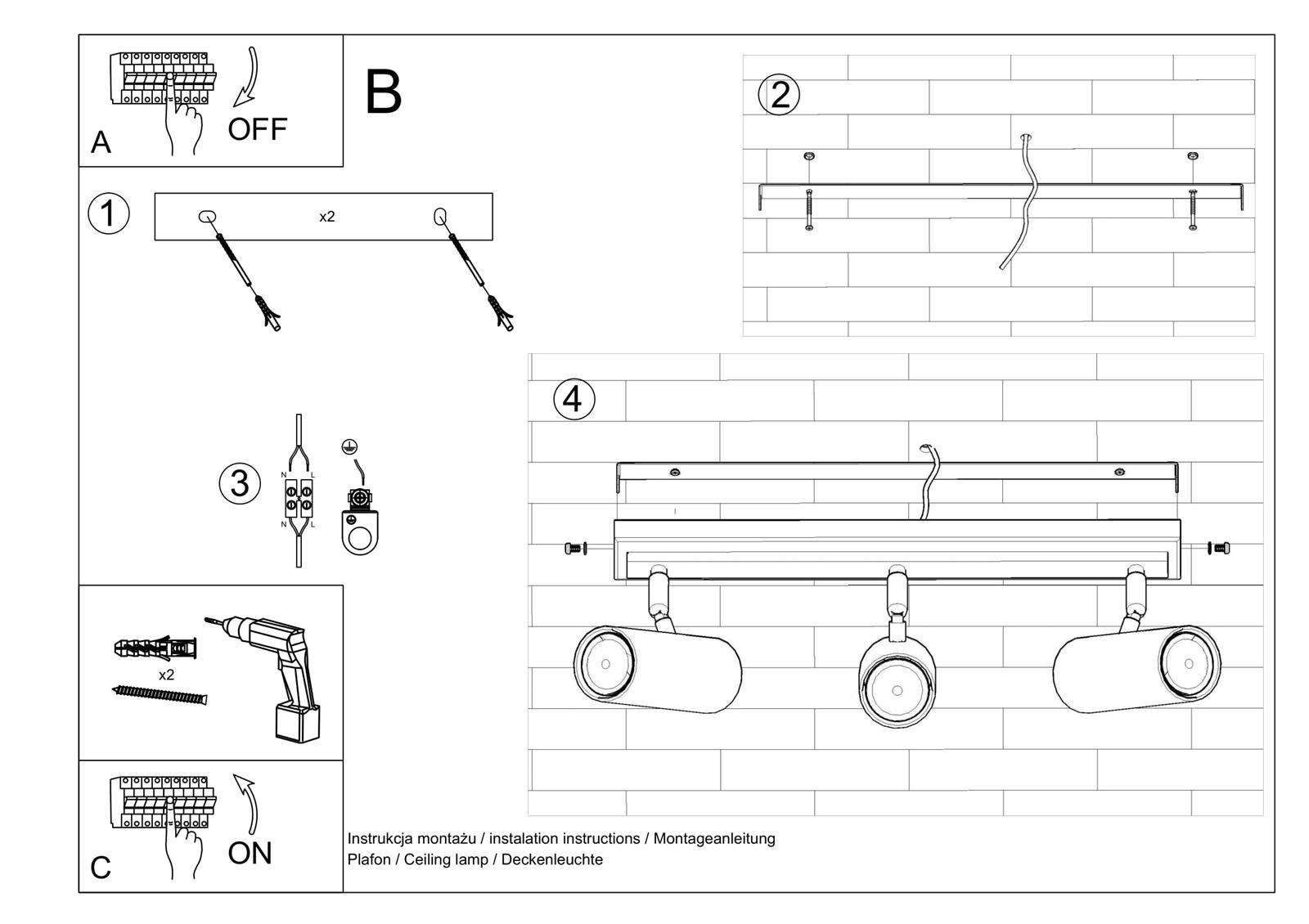 Sol-SL.0497 Ceiling lamp DIREZIONE 3 white - Direzione