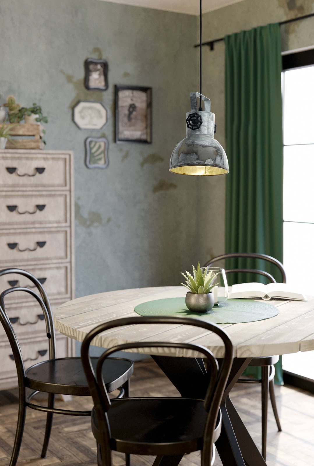 Zajímavá bodová svítidla vyrobená z oceli a dřeva. Svítidla mají velmi osobitý, industriální charakter. Základna má hnědou barvu a stínidla jsou v patině vzhled zašlého zinku. |