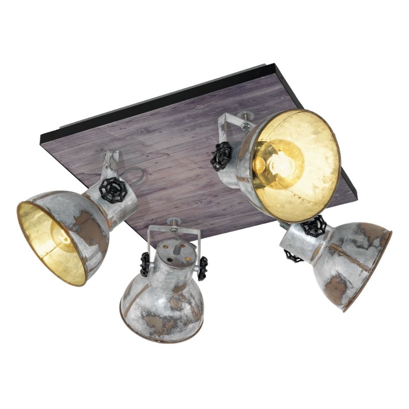 Zajímavá bodová svítidla vyrobená z oceli a dřeva. Svítidla mají velmi osobitý, industriální charakter. Základna má hnědou barvu a stínidla jsou v patině vzhled zašlého zinku. |