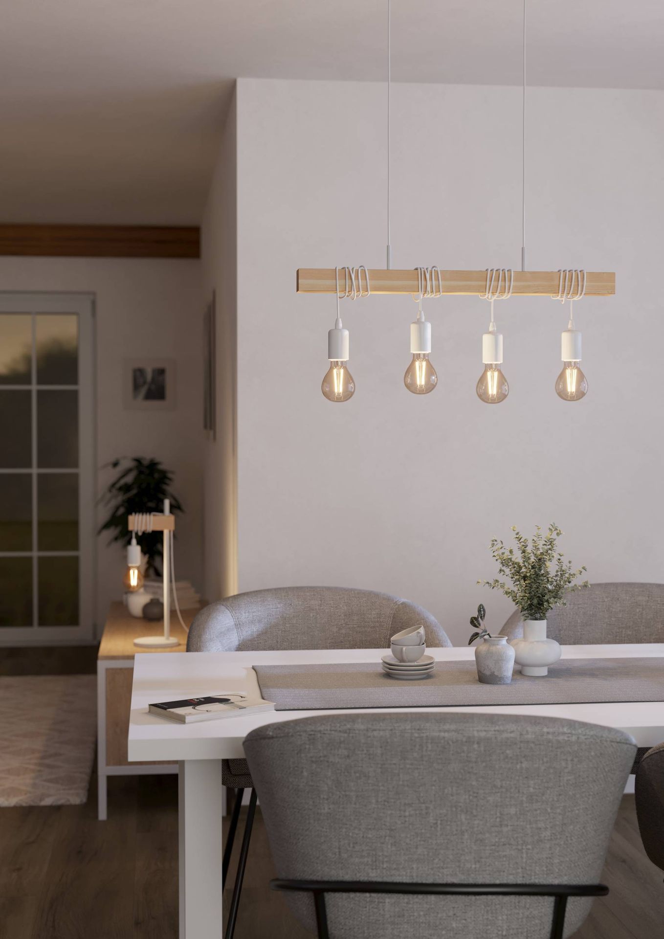 Egl-43704 HL/4 E27 WEISS/HOLZ 'TOWNSHEND' - Townshend white