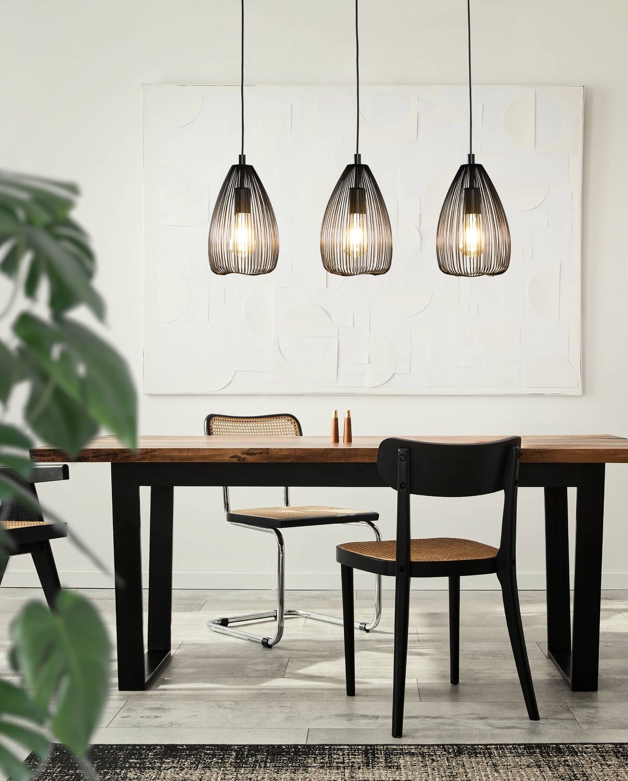 Moderní stylová svítidla vyrobená z oceli v černé barvě. Hodí se do jídelen nad jídení stůl, obývacích pokojů, chodeb a předsíní. Ve vašem interiéru budou zajímavým prvkem. |