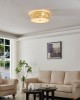 Moderní svítidla Viserbella jsou vyrobena z oceli v barvě champagne a textilu v barvě zlata. |