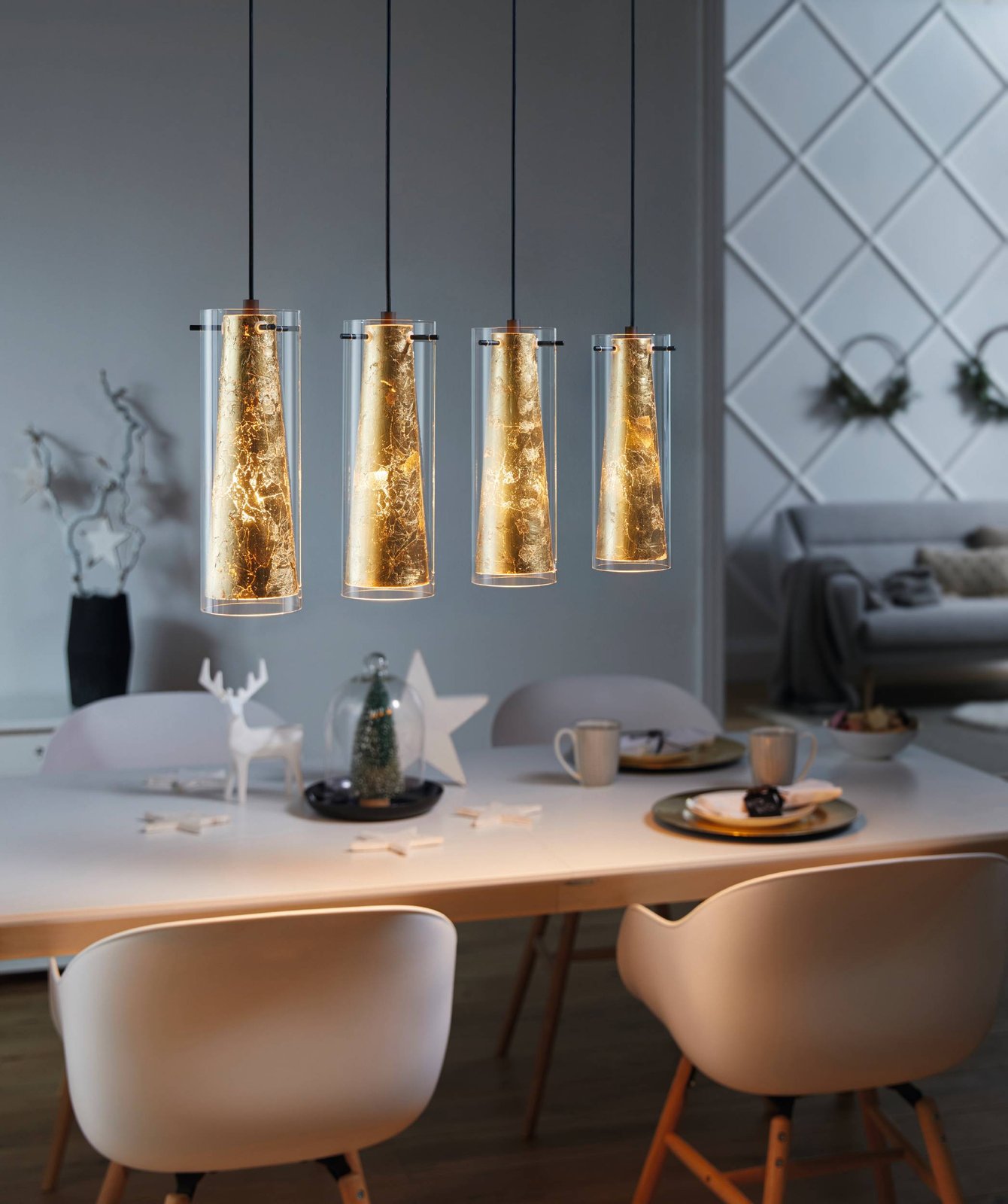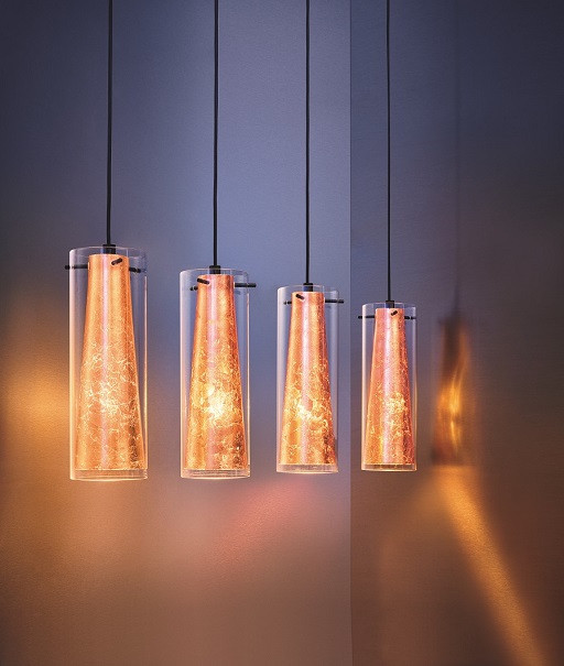 Moderní, stylová svítidla Pinto gold. Základna je vyrobena z oceli v černé barvě, stínidlo je ze skleněného válce v čiré barvě, uvnitř kterého je ocelový zlatý kužel. Svítidla lze použít do celého interiéru, čímž se utvoří ucelený celek interiéru. |