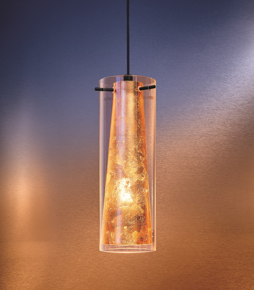 Moderní, stylová svítidla Pinto gold. Základna je vyrobena z oceli v černé barvě, stínidlo je ze skleněného válce v čiré barvě, uvnitř kterého je ocelový zlatý kužel. Svítidla lze použít do celého interiéru, čímž se utvoří ucelený celek interiéru. |