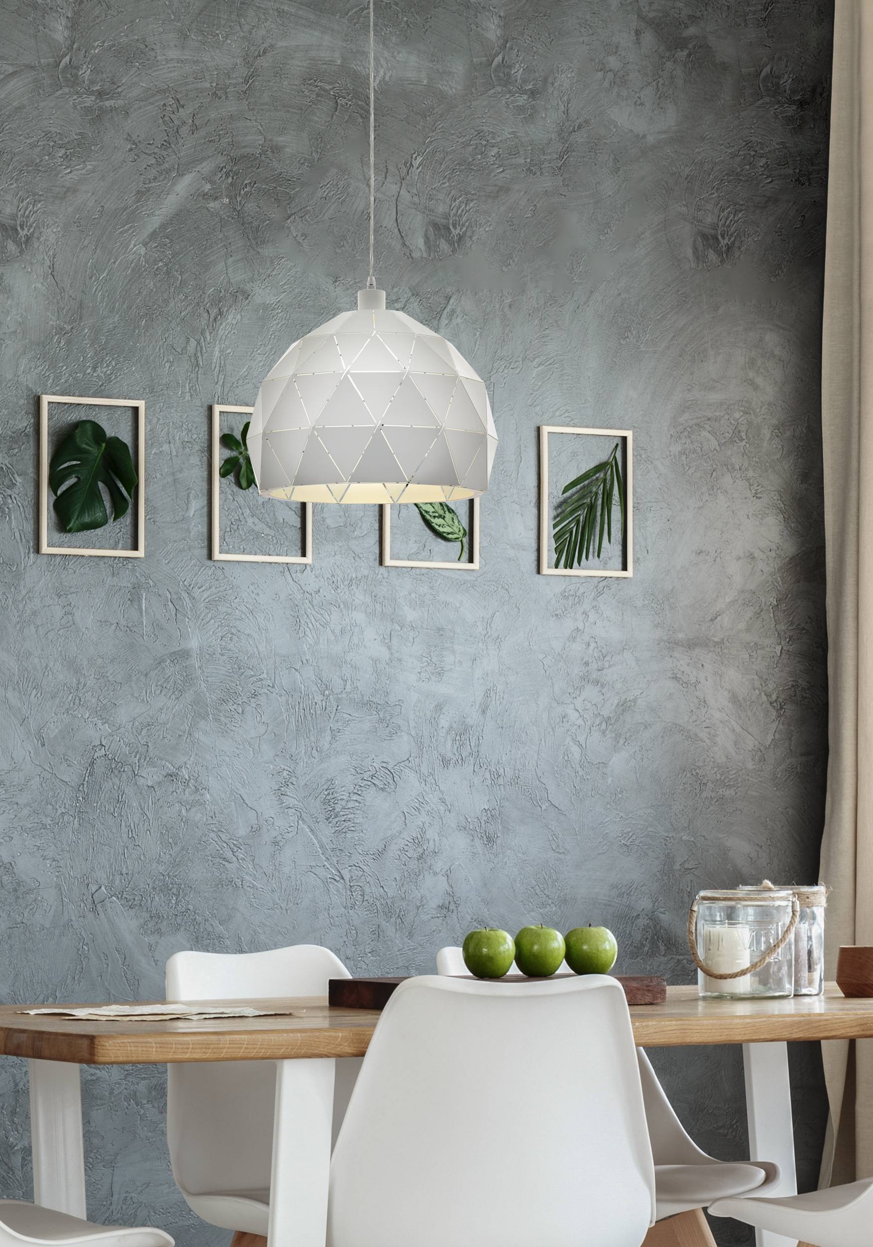Stylová závěsná svítidla vhodná do všech moderních interiérů. Jsou vyrobena z oceli v bílé barvě. Stínidlo je tvořené malými spojenými trojúhelníky, kterými prosvítá po rozsvícení svítidla světlo, což vypadá velmi efektně. |