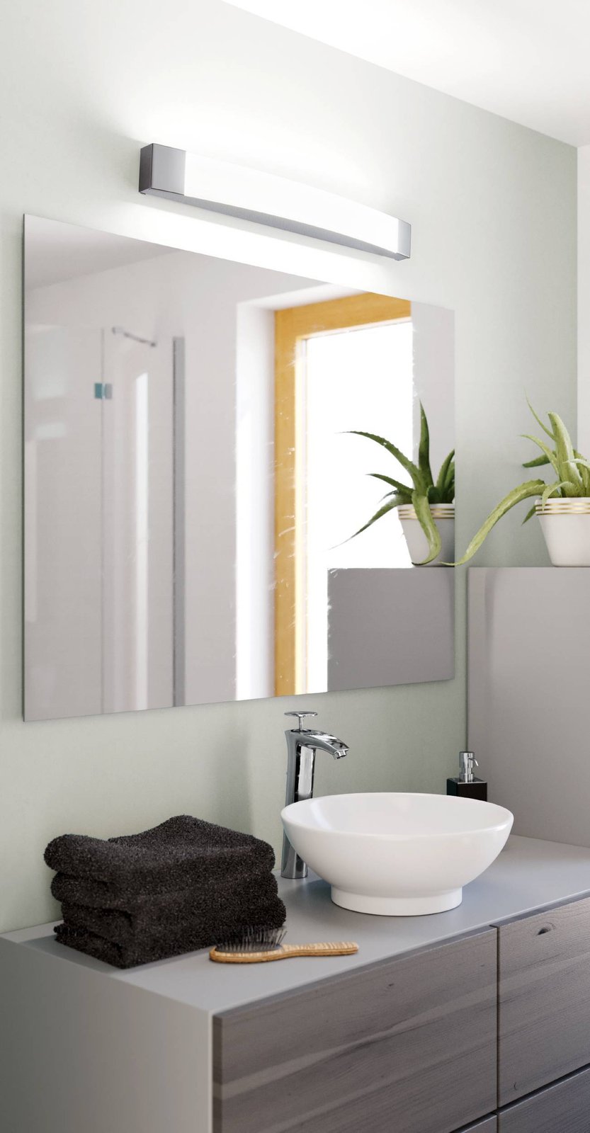 Koupelnové LED svítidlo Siderno je vyrobeno v moderním jednoduchém designu. Tělo svítidla je kovové v barvě chromu a difuzor plastový v matné bílé barvě.