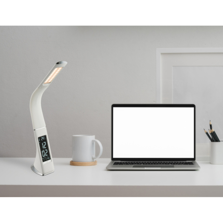 GL-58333 Stolní svítidlo, plast, bílá, chrom, s hodinami a budíkem, flexi, stmívatelné, fixace barev, dotykový stmívač, Dx?xV: 25x7x51cm, 1xLED 6,5W 230V, 260lm, změna barvy světla, 3000-4500-5800K - Sophie LED