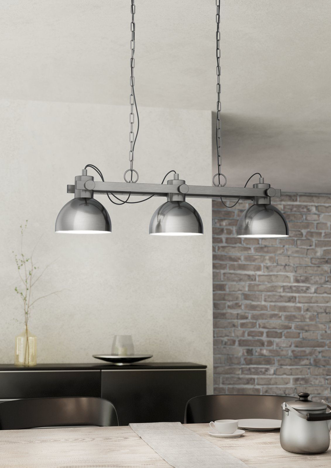 Industriální svítidlo vyrobené z oceli v barvě antický nikl a krémová. Tento lustr se třemi hlavami se krásně bude vyjímat nad jídelním stolem nebo kuchyňským ostrůvkem. |