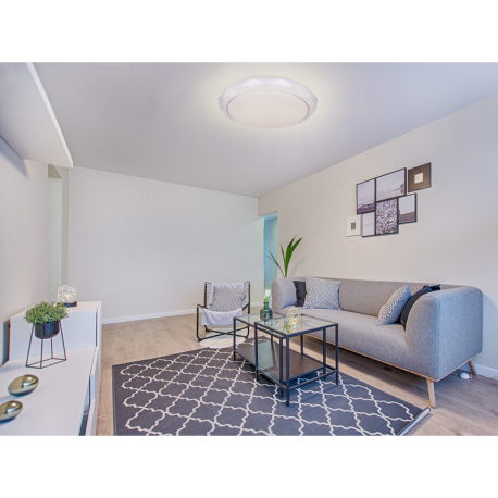 GL-48304CCT Stropní svítidlo, kovový bílý, saténový akrylát, třpytivý efekt, noční osvětlení, stmívatelné, dálkové ovládání, fixace barev, Ø50cm, V:9cm, 1xLED 48W 230V, 350-3360lm, 3000-4500-6500K - Andi LED