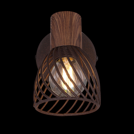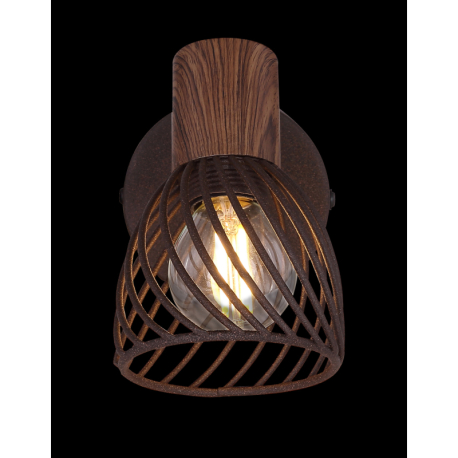 GL-54817-1 Nástěnné svítidlo, kov v barvě imitující rez, kov imitace dřeva, vypínač, ?xV: 8x12cm, H:13cm, bez žárovky 1xE14,max. 40W 230V - Isabelle