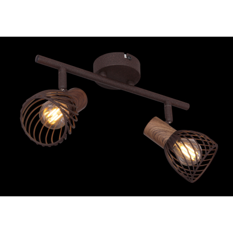 GL-54817-2 Nástěnné svítidlo, kov v barvě imitující rez, kov imitace dřeva, DxV: 30x16cm, bez žárovek 2xE14, 40W 230V - Isabelle