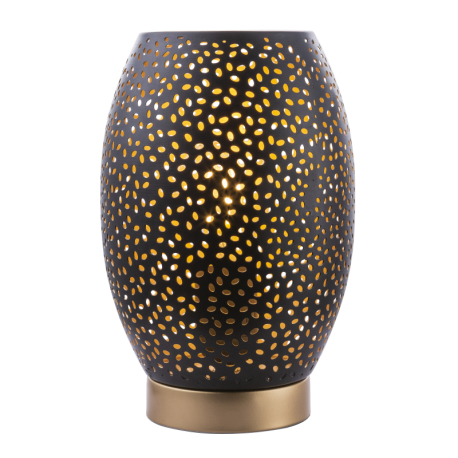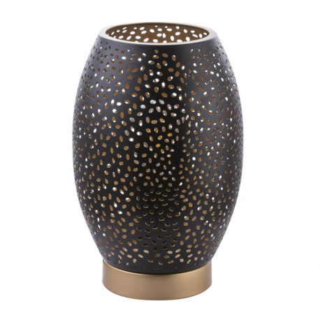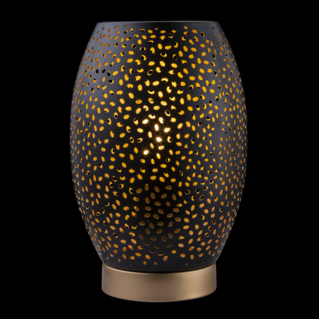 GL-24002S Stolní lampa, kov zlatý, kov černý, matný zlatý, kabel 1,5m, stínítko s dekorativním děrováním, vypínač, Ø15cm, V: 23cm, bez žárovky 1xE27, max. 40W 230V - Narri