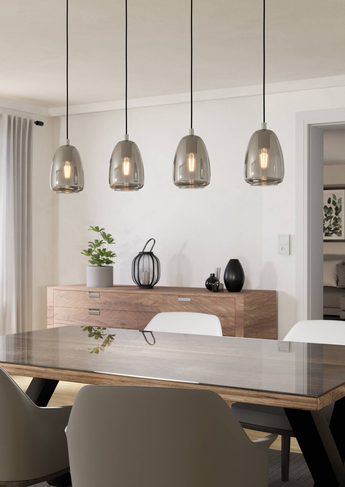 Moderní lustry vyrobené z oceli v chromové barvě, stínidla jsou vyrobeny ze skla v kouřové barvě. Jsou vhodná především do kuchyní a jídelen, nad jídelní stůl nebo kuchyňský ostrůvek. |
