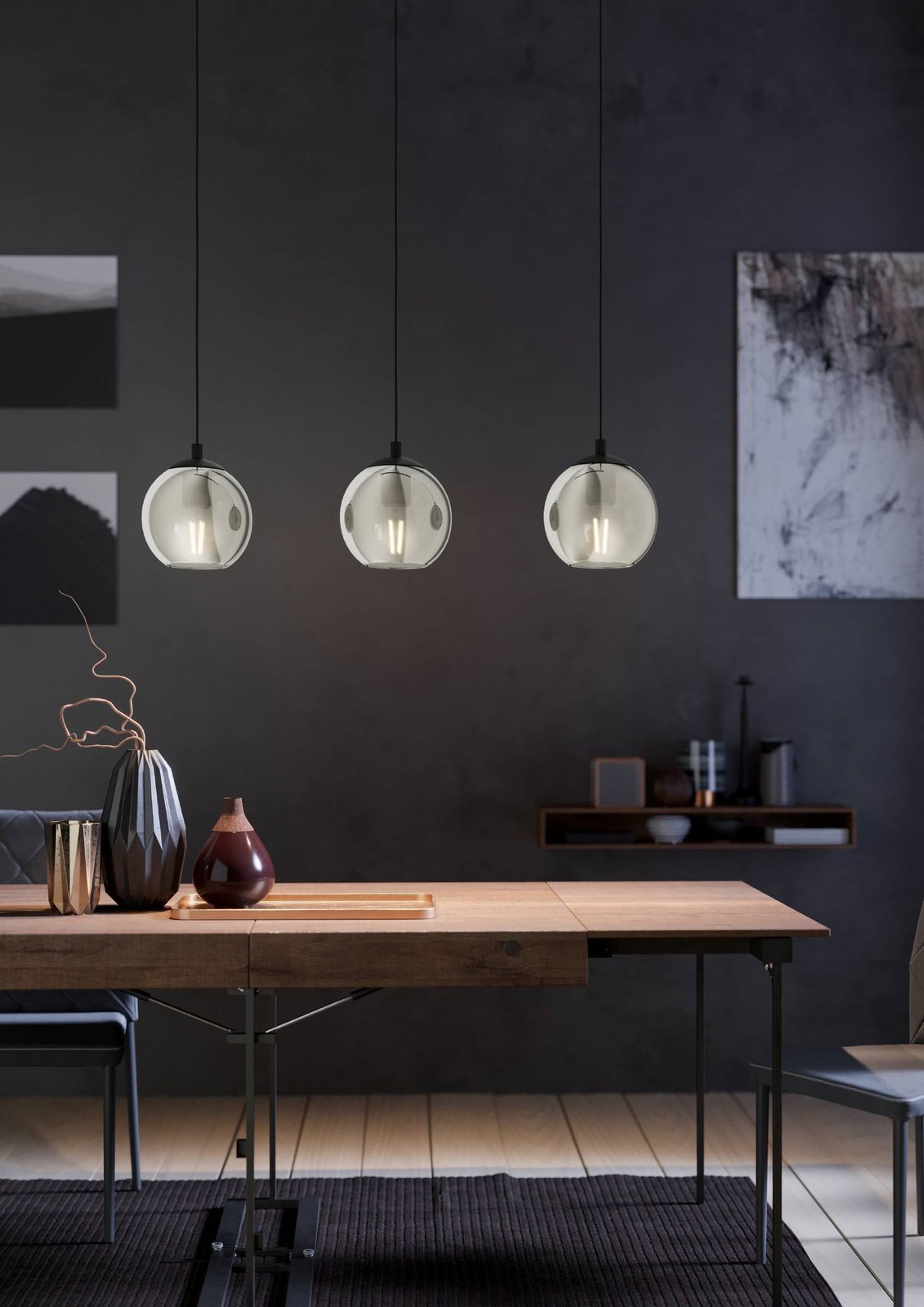 Moderní závěsná svítidla Ariscani jsou vyrobena z oceli v černé barvě a kouřového skla. Jsou vhodná do kuchyní a jídelen, nad kuchyňské ostrůvky, jídelní stoly, ale také do obývacích pokojů. |