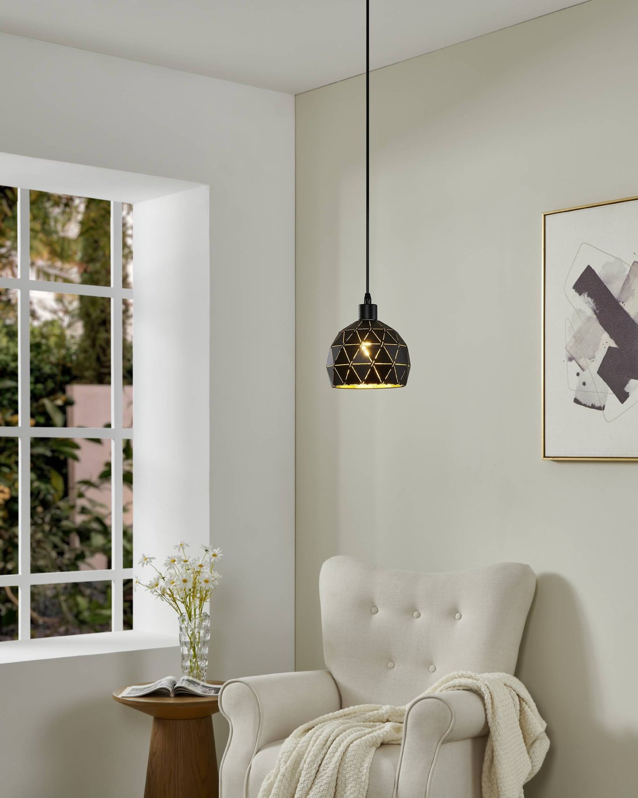 Velmi zajímavá svítidla vyrobená z oceli v černé barvě, vnitřní strana stínidla je zlatá. Jsou vhodná především do jídelen a kuchyní nad kuchyňský ostrůvek, ale zajímavým prvkem budou také v obývacím pokoji. |