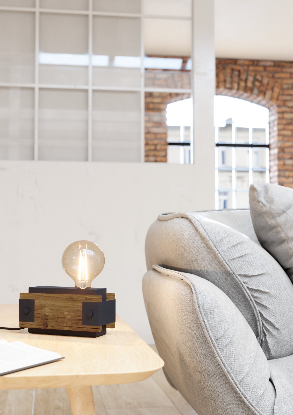 Designová lampa a stolní lampička vhodná do všech moderních interiérů. Jsou vyrobeny z oceli v černé barvě a ze dřeva v hnědé barvě. |
