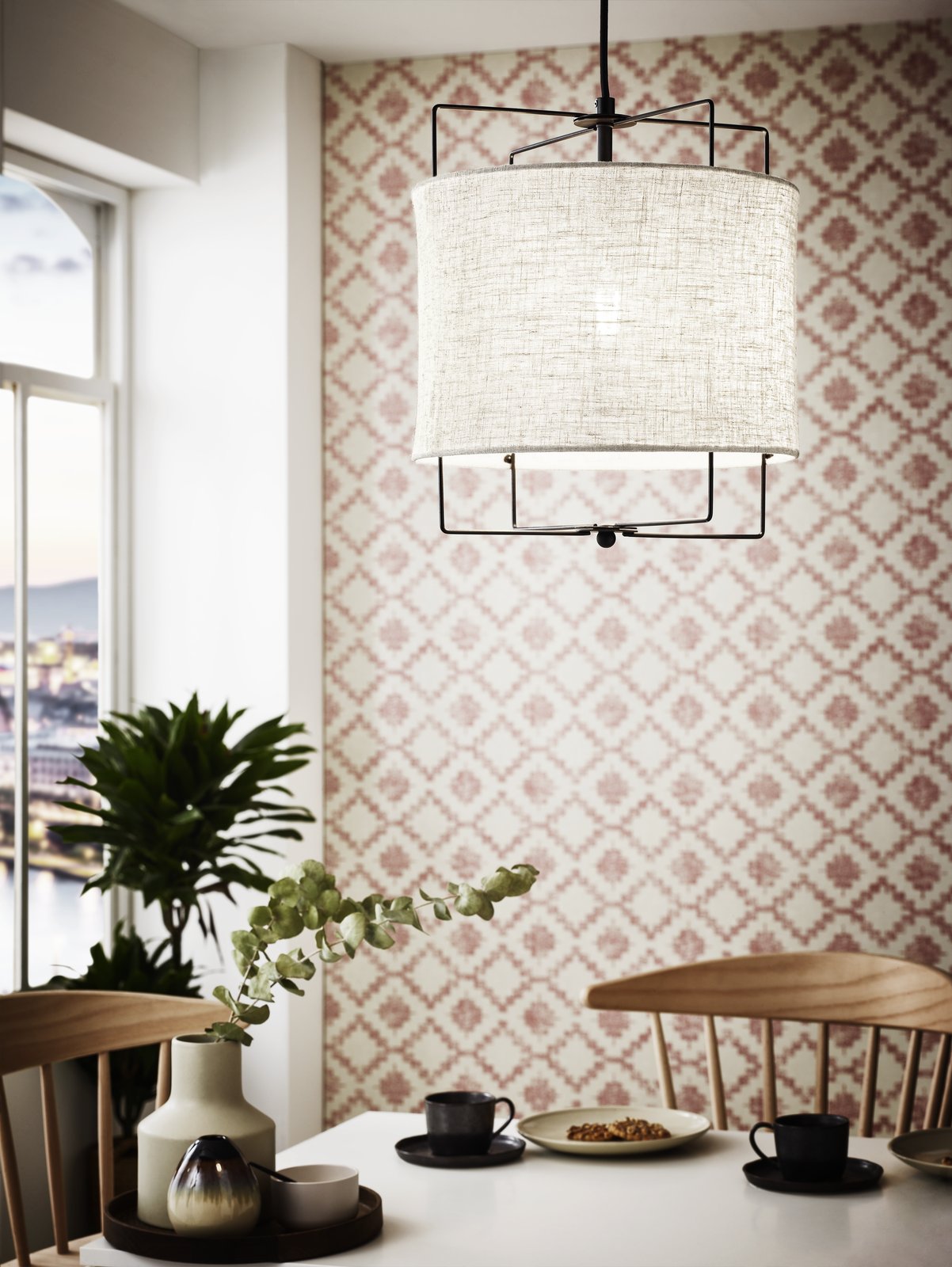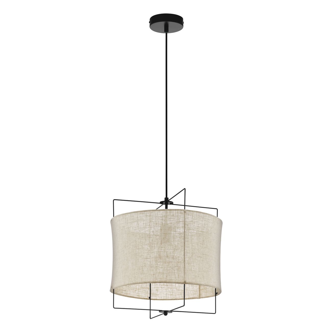 Jednoduché závěsné svítidlo vhodné do obývacích pokojů, ale i kuchyní. Je vyrobeno z oceli v černé barvě a z textilu v přílodní a lněné barvě. |