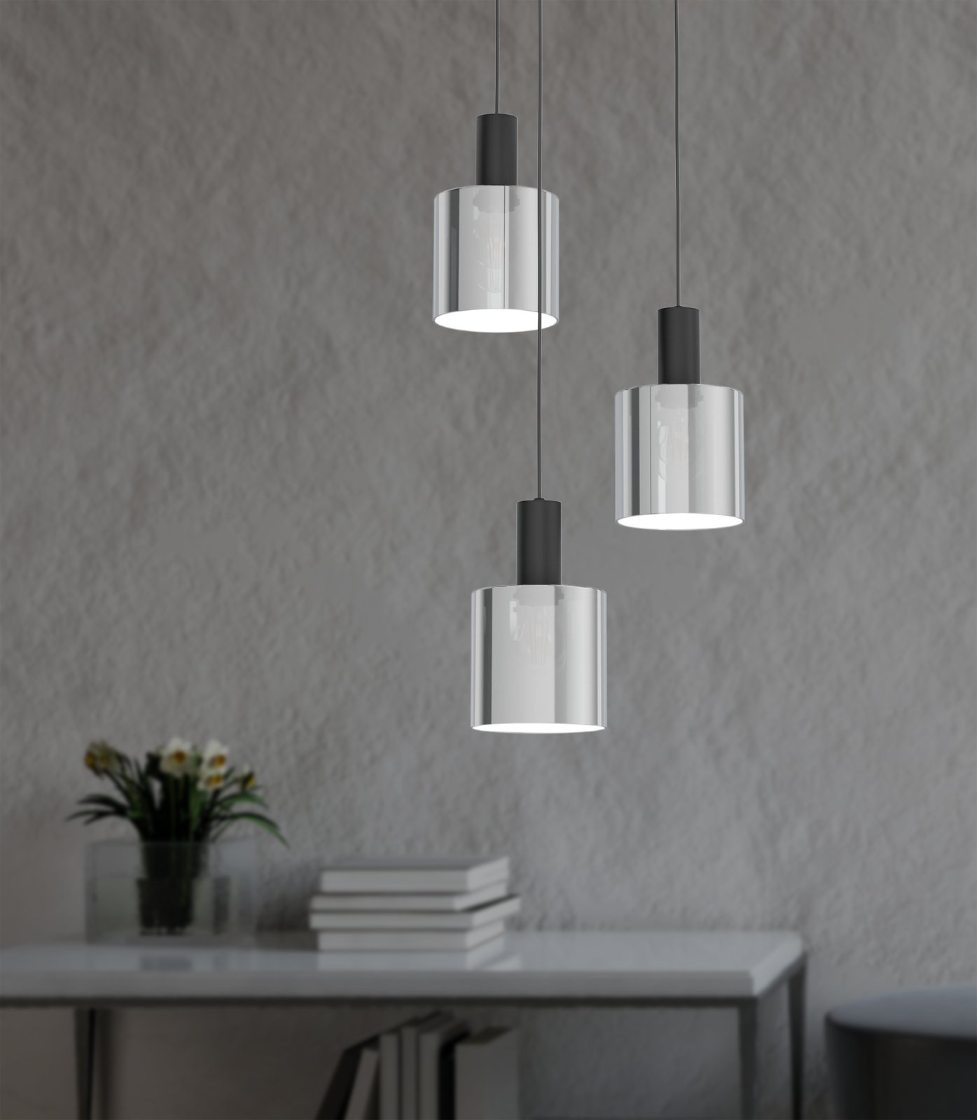 Jednoduché moderní lustry Gorosiba jsou pěkným doplňkem do vaší kuchyně, jídelny. nebo obývacího pokoje. Jsou vyrobeny z oceli v černé barvě a skla v černé transparentní barvě. |