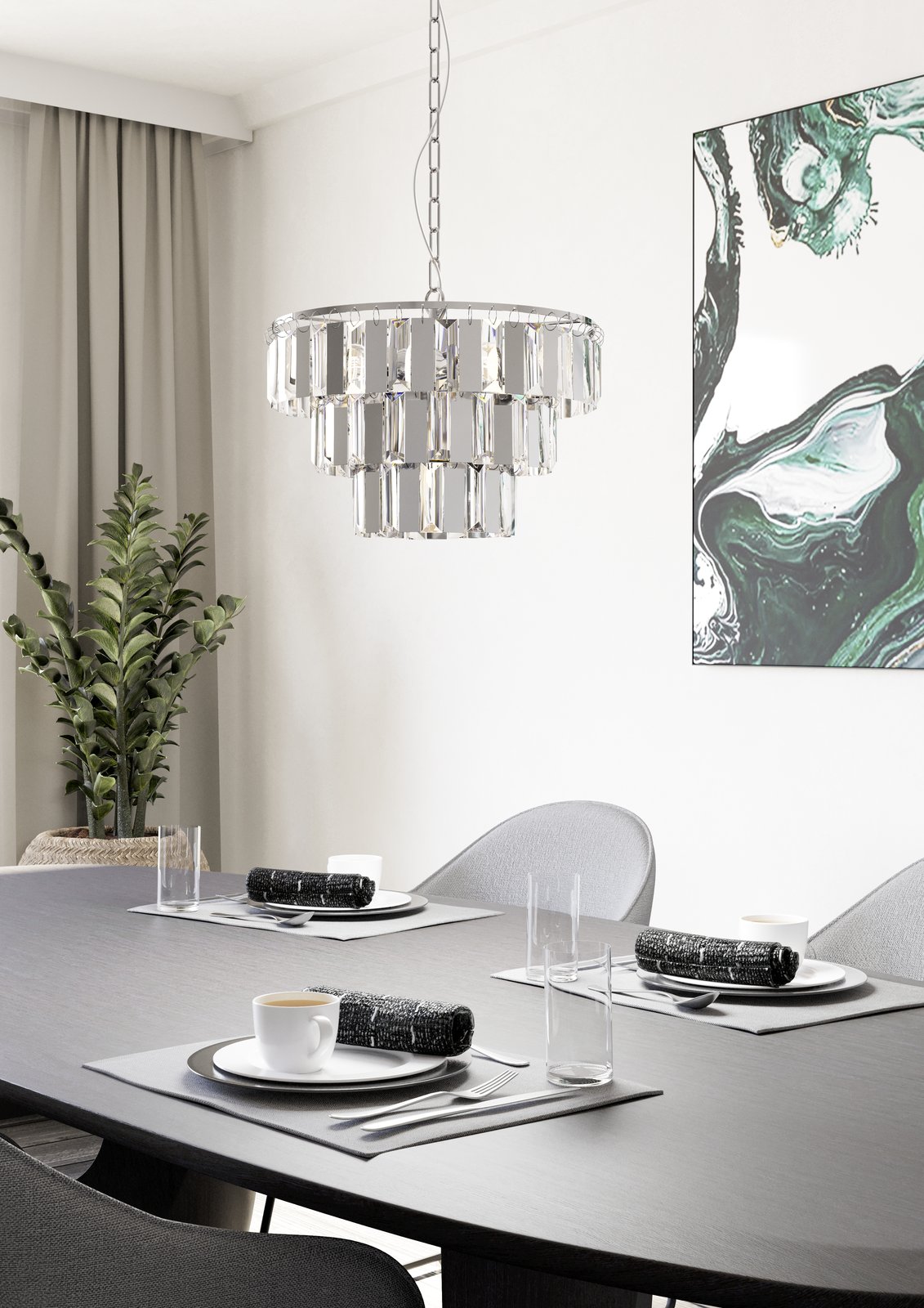 Moderní a elegantní křišťálová svítidla vyrobená z oceli a křišťálu. Jsou vhodná do obývacích pokojů, ale i kuchyní, jídelen, pracoven nebo vstupních hal. Působí velmi luxusním dojmem. |