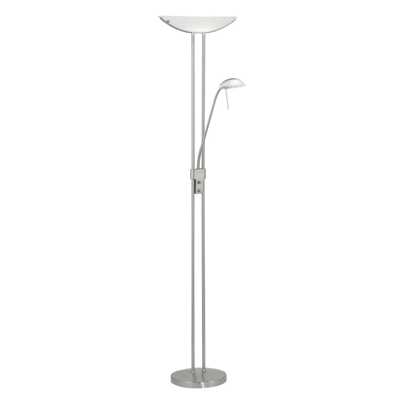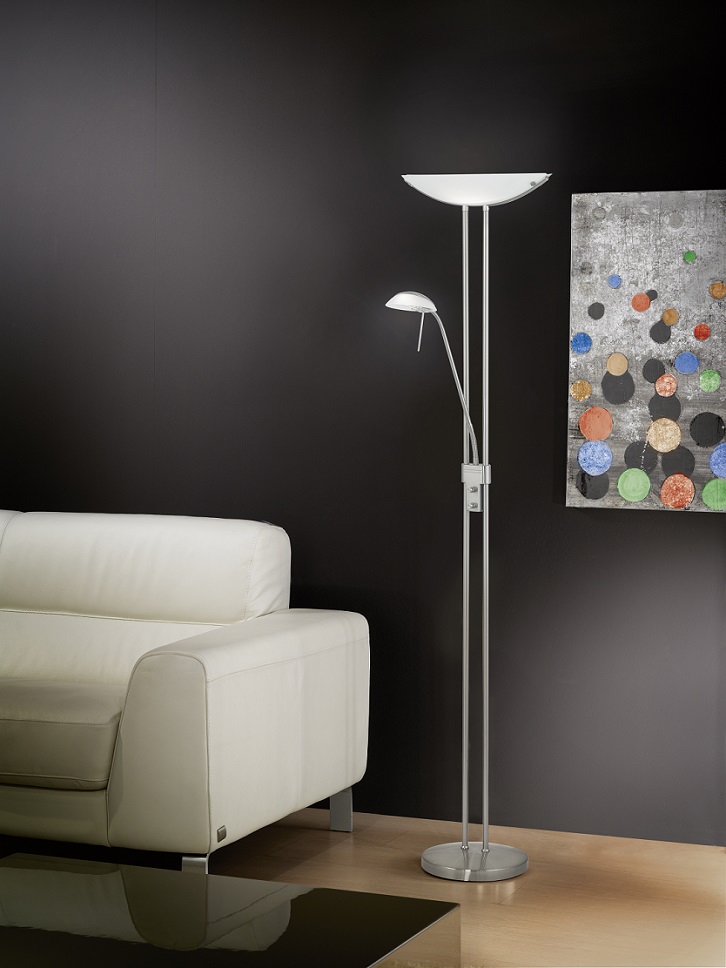 Lampy vyrobené z oceli a satinovaného skla. Mají přídavné rameno, které lze stejně jako hlavní stínidlo stmívat a volit tak vhodnou intenzitu svícení např. při čtení. |