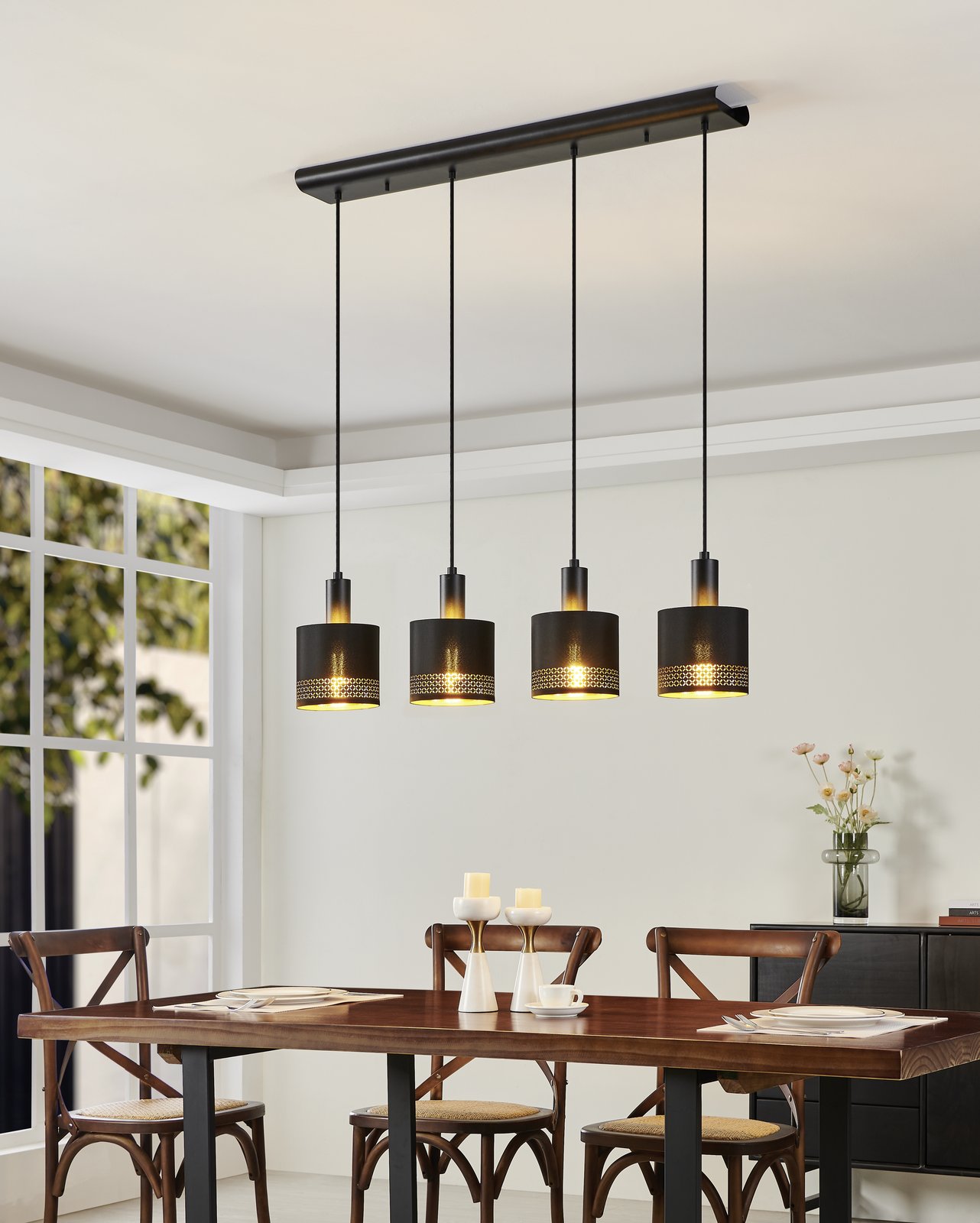 Velmi zajímavá a moderní svítidla Esteperra jsou vyrobena z oceli v černé barvě a textilu v černé a zlaté barvě. Použitím těchto svítidel docílíte uceleného celku v interiéru. |