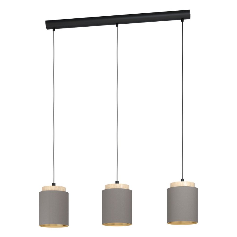 Pěkná, moderní svítidla vhodná především do kuchyní a jídelen, nad jídelní stůl nebo kuchyňský ostrůvek, ale budou zajímavým prvkem také v obývacím pokoji. Jsou vyrobena z oceli v černé barvě s dřevěným prvkem v hnědé barvě a z textilu v cappuccino a zlaté barvě. |