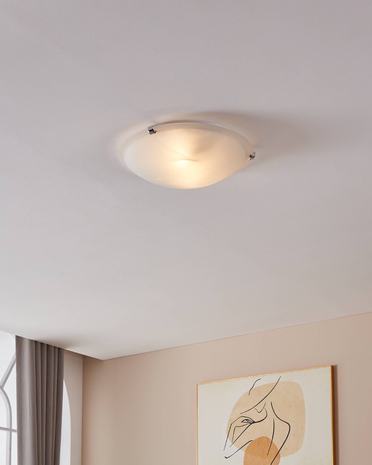 Stropní a nástěnná svítidla vyrobená z oceli v barvě chromu a z alabastrového skla v bílé barvě. Jsou vhodná do interiérů v klasickém stylu, především do chodeb a předsíní. |