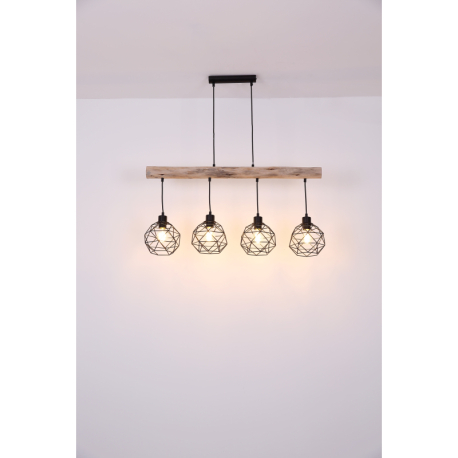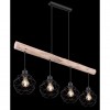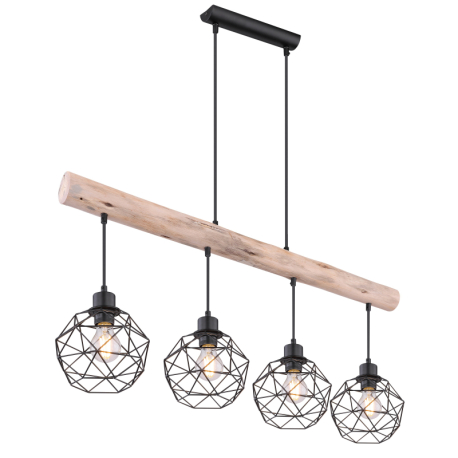 GL-15416-4 Závěsné svítidlo, kov černý matný, přírodní dřevo, kov černý matný, stínítko - kovová mřížka, Dx?xV: 85x18x120cm, bez žárovek 4xE27, max. 60W 230V - Theodor