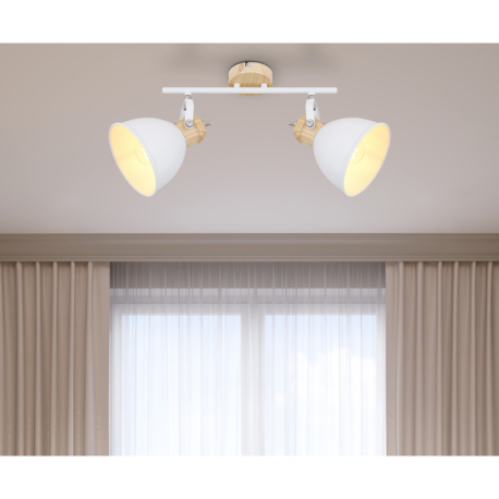 GL-54018-2 Nástěnné svítidlo, kov bílý, kov imitace dřeva, Dx?xV: 35x15x22cm, bez žárovek 2xE27, max. 40W 230V - Wiho white
