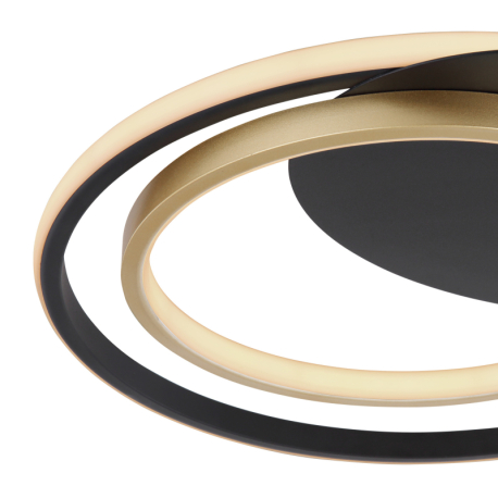 GL-48438-36 Stropní svítidlo, kov černý a zlatý, akryl bílý, paměťová funkce, noční světlo, stmívatelné, dálkové ovládání, fixace barev, Dx?xV: 49x47x6cm, včetně 1xLED 36W 230V, 4500lm zdroj, 900lm výstup, změna barvy světla 3000-6000K - Rodan 2 LED