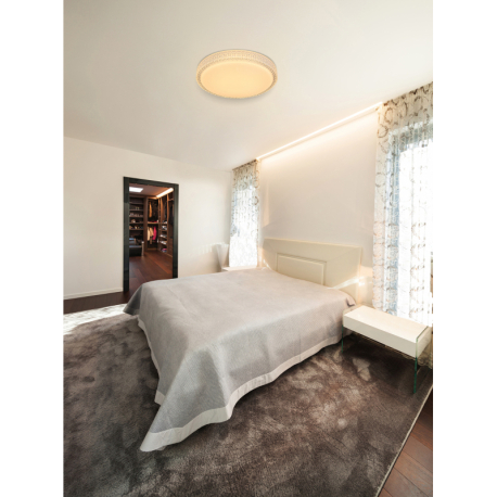 GL-41749-22  Stropní svítidlo, kov bílý, akryl bílý, průhledné plastové křišťály, změna barvy světla pomocí nástěnného vypínače, třpytivý efekt, Ø40cm, V:9cm, včetně 1xLED 22W 230V, 2400lm zdroj, 1600lm výstup, změna barvy světla 3000-4500-6500K - Ovi LED