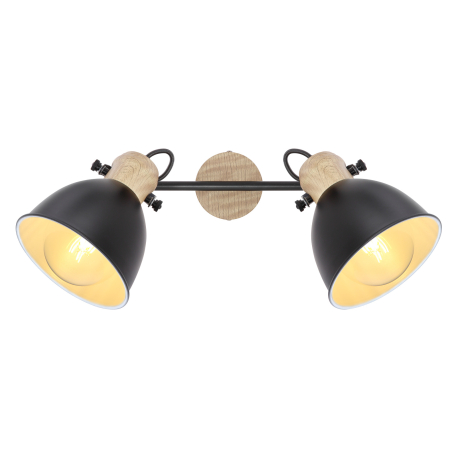 GL-54018-2S Nástěnné svítidlo, kov černý, kov v barvě imitující dřevo, hnědý, Dx?xV: 35x15x22cm, bez žárovek 2xE27, max. 40W 230V - Wiho