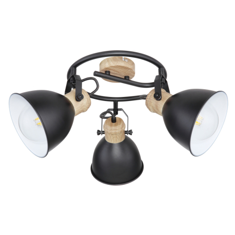 GL-54018-3S Stropní svítidlo, kov černý, kov v barvě imitující dřevo, hnědý, Ø25cm, V:22cm, bez žárovek 3xE27, max. 40W 230V - Wiho