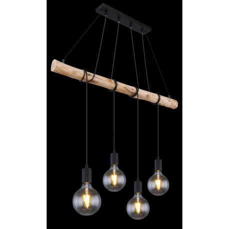 GL-15439-4 Závěsné svítidlo, kov černý matný, dřevo, Dx?xV: 90x7x120, bez žárovek 4xE27, max. 60W 230V - Auston