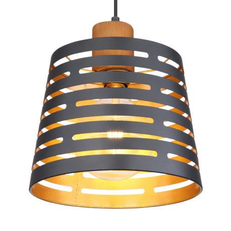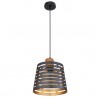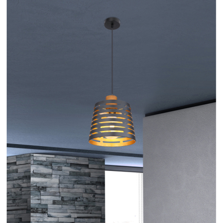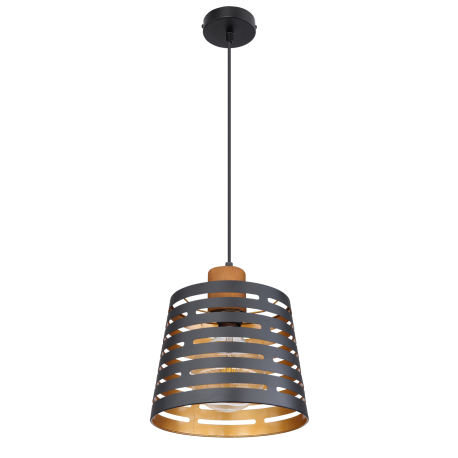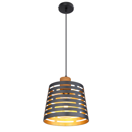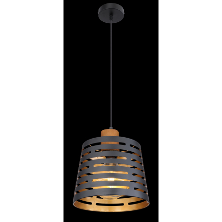 GL-15451H Závěsné svítidlo, kov černý matný, dřevo, kov černý a zlatý, Ø25cm, V:120cm, bez žárovky 1xE27, max. 60W 230V - Ablona
