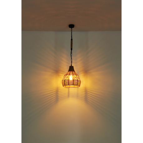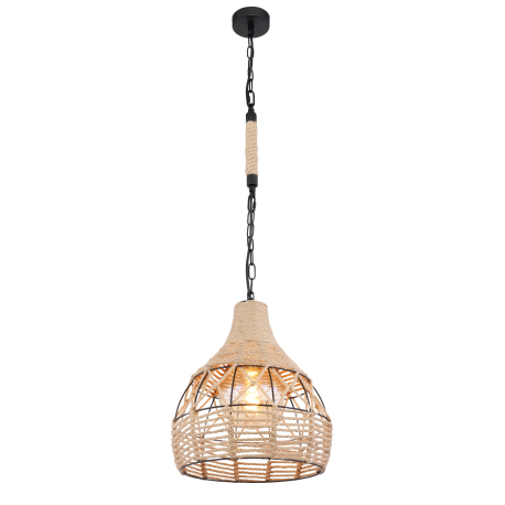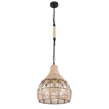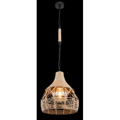 GL-15671H Závěsné svítidlo, kov černý matný, konopné lano hnědé, černý řetěz, Ø30cm, V:135cm, bez žárovky 1xE27, max. 60W 230V - Halia I