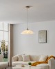 Kuchyňské svítidlo v klasickém stylu vyrobené z oceli v barvě matný nikl a ze skla v bílé barvě s dekorem. |
